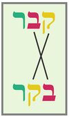 - Contrasting words: The psalm starts, in v. 2, with a call to YHWH the God of salvation (יְשׁוּעָתִי), followed by יוֹם, which is negated in the same verse by לַּ֣יְלָה. The latter opens a long series of terms that refer to death, either to the Underworld or to the dead (see words highlighted in grey in the visual, starting at v. 4). It is only in v. 10 that יוֹם is back to mark the beginning of a section (vv. 11-13) containing an interesting mixture of words of both types: those denoting death and those denoting God's, the source of life, loving attributes (see words highlighted in light blue in the visual). Starting from v. 14 all the death words disappear for good[1] and the whole line of contrasting terms is concluded by בֹּקֶר in v. 14, a prominent metathesis of קֶבֶר in v. 12 (see image to the right).