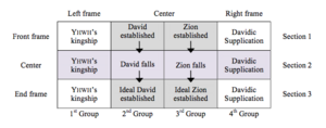 + <Linear reading>: The Sections have a linear trajectory. The Group Central Motifs of Davidic kingship and Zion undergo linear development across the three Sections.